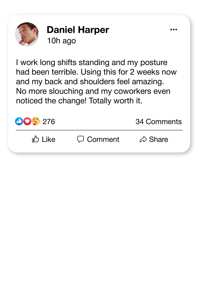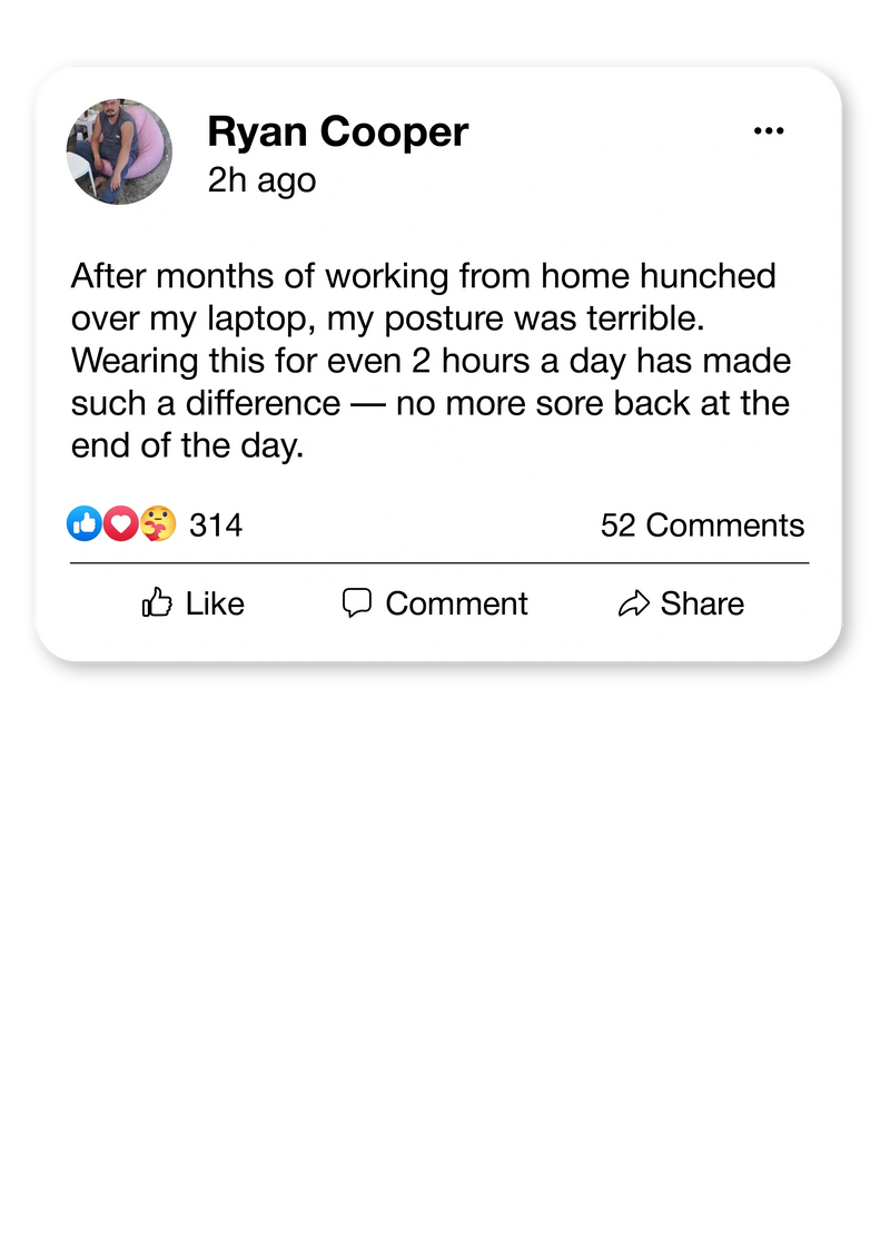 It trains your muscles over time for a naturally upright posture, so you can move through your day with confidence, comfort, and ease.